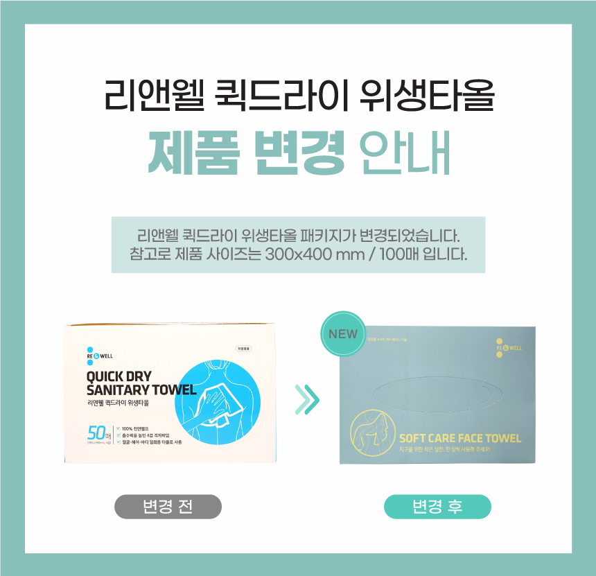 이미지 확대보기리앤웰 소프트케어 페이스타올 (100매입) 일회용수건 병실수건 간병수건 환자목욕용품핸드타올 입원준비물 퀵드라이타올 병원수건